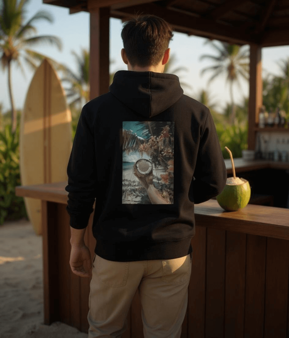 Ein kleiner Moment voller Leichtigkeit, Sonne und Meeresluft. Dieser Hoodie erinnert daran, die einfachen Freuden des Lebens zu genießen und die Geschichten des Sommers in jedem Augenblick zu spüren. Freiheit, die man tragen kann.
