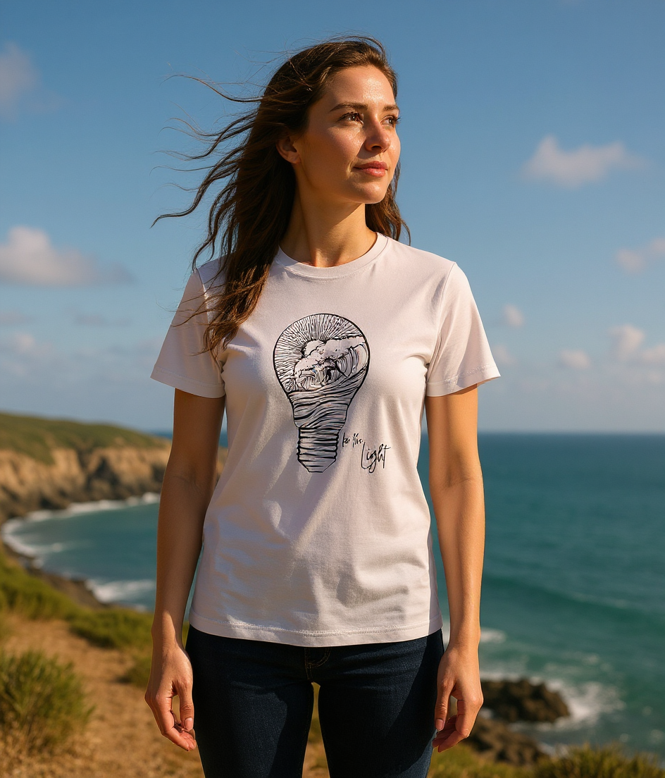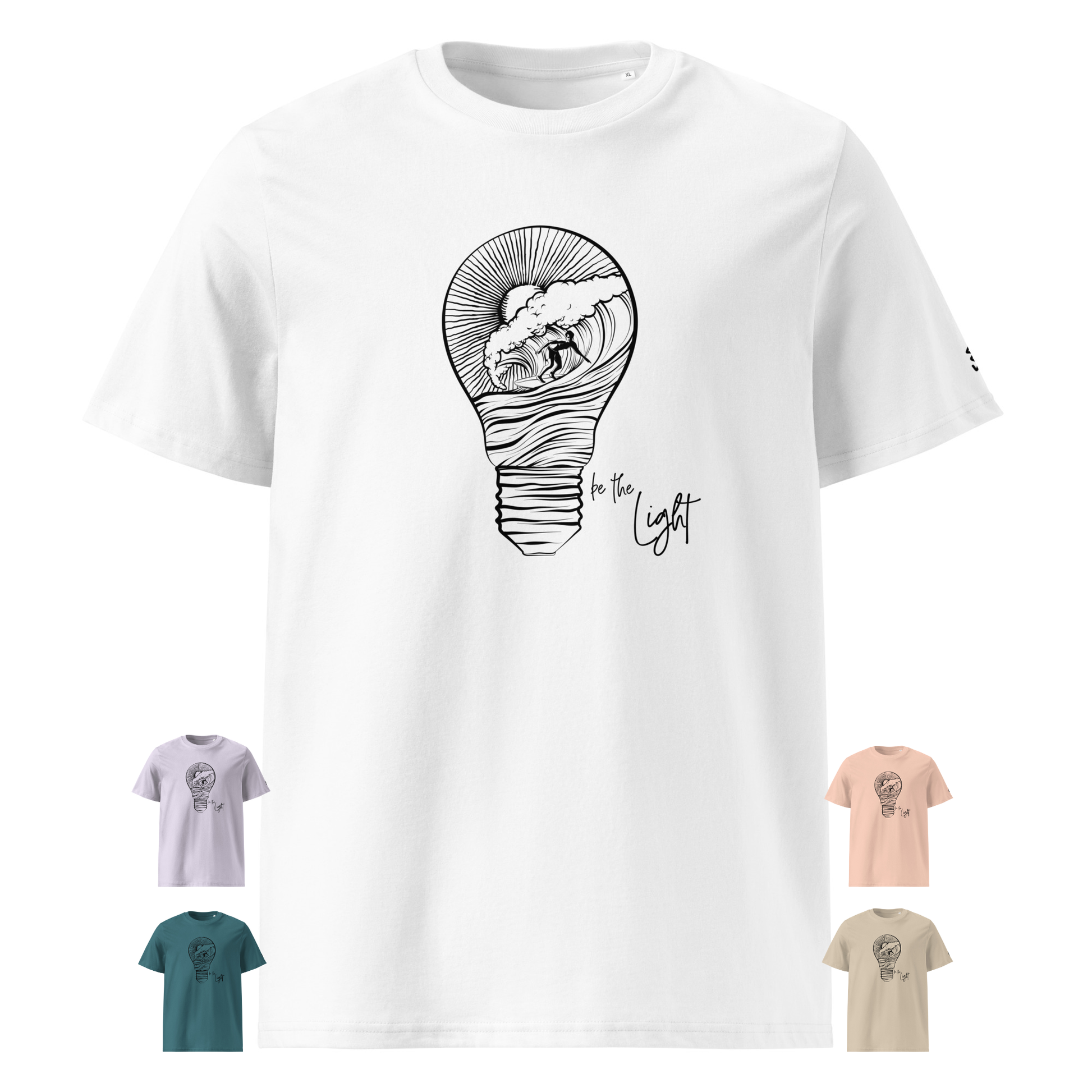 Dieses T-Shirt erzählt von Momenten, in denen ein einzelner Gedanke die Welt verändern kann – wie ein Lichtstrahl, der die Wellen durchbricht. In der Glühbirne ruht ein Surfer auf der Welle, bereit, jeden Augenblick mit Mut und Leichtigkeit zu erleben. Draußen strahlt der Schriftzug „Be the light“ wie ein leiser Anstoß, selbst im Alltag den eigenen Funken nicht zu verlieren. Ein Shirt für Träumer und Abenteurer.