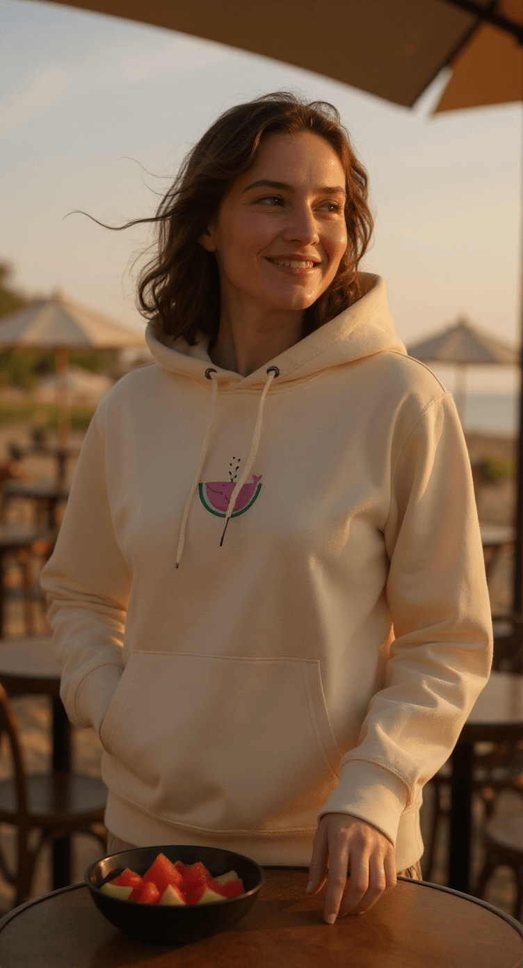 Dieses Stück erinnert daran, wie leicht und fröhlich das Leben sein kann. Ein Hoodie für kuschelige Momente, für Lächeln, für kleine Abenteuer – und für alle, die das Gefühl von Freiheit am liebsten immer bei sich tragen. Geschichten entstehen in den Momenten, die uns unerwartet glücklich machen.